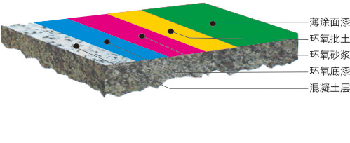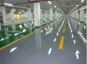 停車場專用環氧樹脂(Epoxy)砂漿地坪漆整體無縫、防塵、耐磨防滑、耐酸抗堿、清潔容易、保養方便、外觀亮麗、顏色多樣、施工簡單、成本經濟,一次施工,可達防塵、耐磨、防水、防火等多種性能。施工厚度可任選,一般0.5mm-3mm均可達使用要求,使用年限在5-15年 | |  |